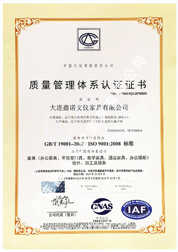 大連鑫諾文儀家具有限公司總部位于中國的北方明珠-大連。公司以教育設(shè)備,家具裝飾裝修為主導(dǎo)產(chǎn)業(yè)。經(jīng)過近10年的發(fā)展,又涉及科學(xué)實(shí)驗(yàn)設(shè)備工程、教育裝備工程、圖書館裝備工程、教學(xué)儀器等各類家具的生產(chǎn)與研發(fā)。 公司建設(shè)了大型生產(chǎn)基地,總面積超過一萬平方米,員工150多人。經(jīng)全體員工多年的不懈努力,公司已發(fā)展成為在大連、沈陽擁有多家公司和生產(chǎn)基地,并在國內(nèi)擁有多家聯(lián)營公司的科、工、貿(mào)為一體的綜合性實(shí)業(yè)企業(yè)。 鑫諾家具實(shí)業(yè)已通過ISO9001:2000國際質(zhì)量管理體系認(rèn)證,ISO14001:2004國際環(huán)境管理體系認(rèn)證。公司堅(jiān)持走品牌發(fā)展路線。旗下產(chǎn)品和服務(wù)有“家具名牌”“家具著名品牌”等多項(xiàng)榮譽(yù)。其品牌大部分已遍布東北三省、山東省等地,涉及十幾個行業(yè)等上萬家企業(yè)單位和高校